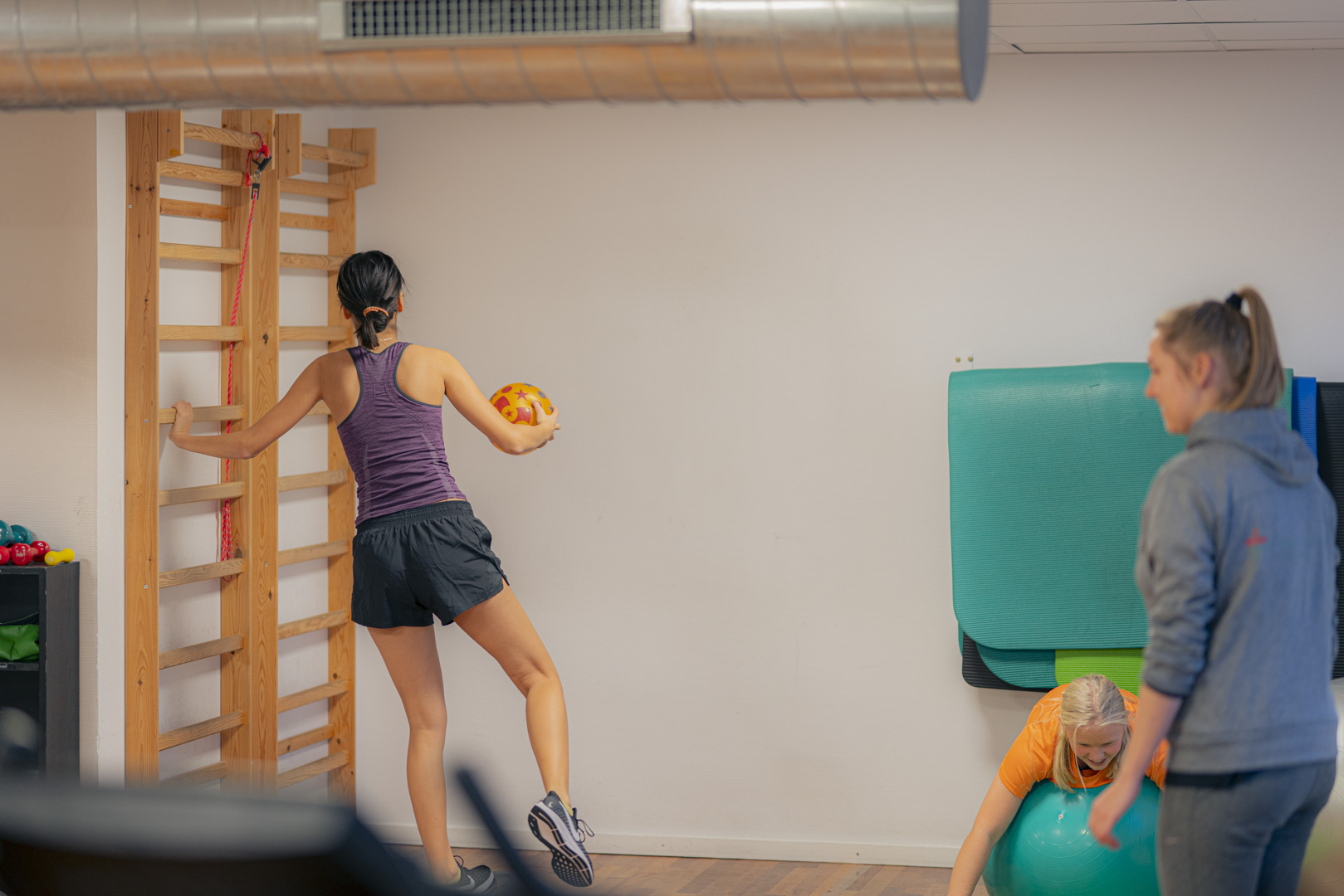 Derefter fortsætter børnene med individuelle programmer, tilpasset deres problematikker, om det handler om balance, stabilitet, styrke eller grovmotorik.