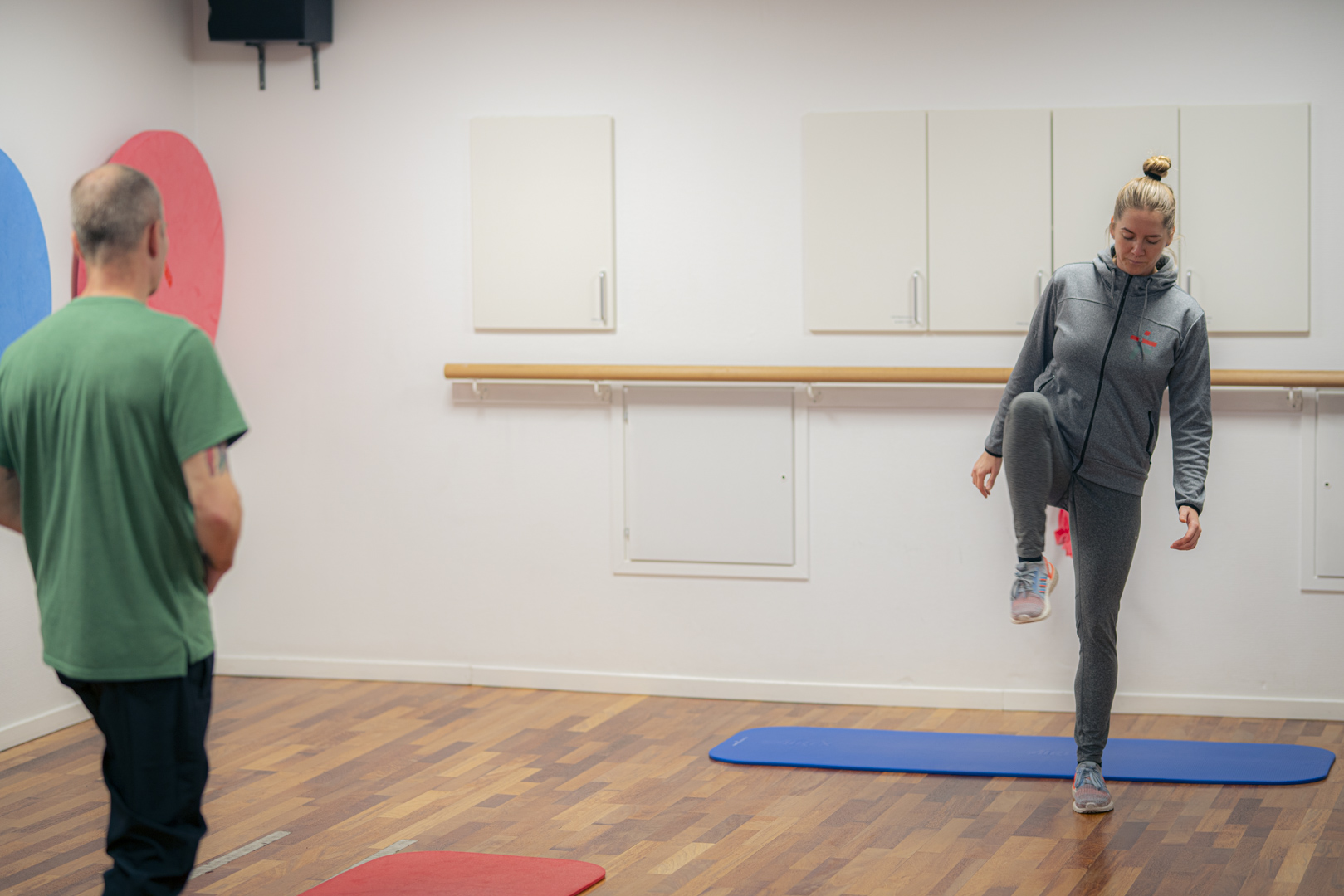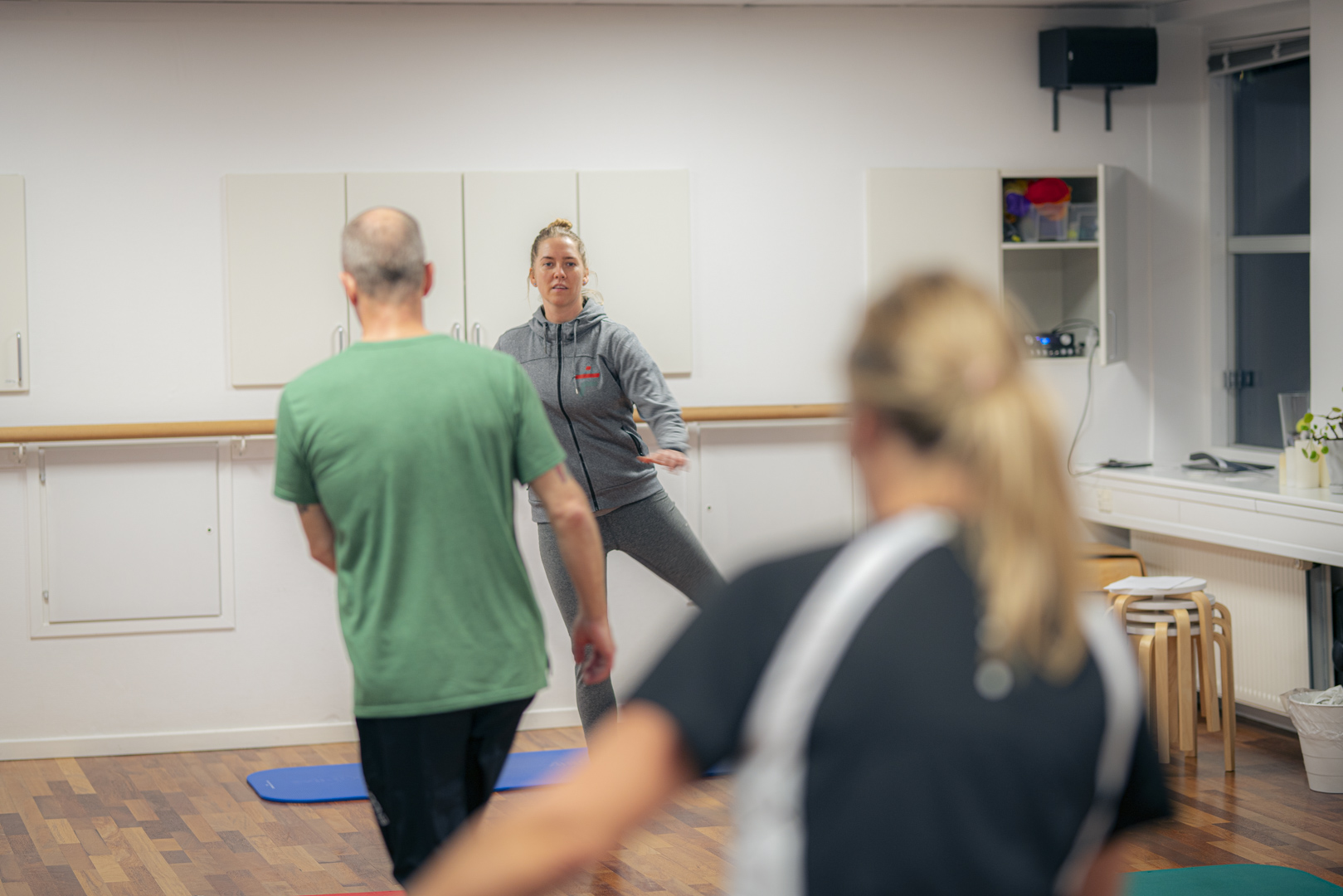 Opvarmning i kredsløbsmaskiner efterfulgt af specialiseret knætræning vejledt og superviseret af fysioterapeut. Der benyttes alt fra træningsmaskiner, vægtstænger, bolde, gulvøvelser, balanceredskaber m.m. af relevans i træningen.